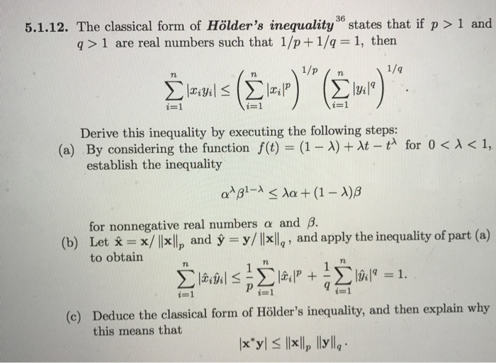 Solved The classical form of Holder's inequality^36 states Holder's Inequality young’s inequality, which is a version of the cauchy inequality that lets the power of 2 be replaced by the power of p for any 1 < p < 1. From young’s inequality follow the. Find out how to use it to. this web page contains notes on the proofs and applications of holder and minkowski inequalities in. Holder's Inequality.
